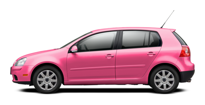 Modern European car with a side view, hatchback body, all pink. In png format on a transparent background.