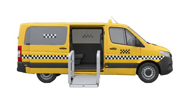 Yellow Accessible Taxi Van with Ramp