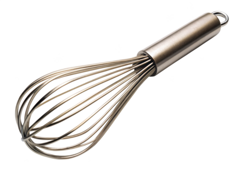 Stainless steel whisk isolated on a white background. Essential kitchen tool for mixing and whipping ingredients. Isolated on transparent background, png.