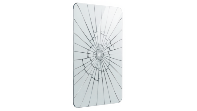 Shattered glass on the back of a modern smartphone, illustrating accidental damage
