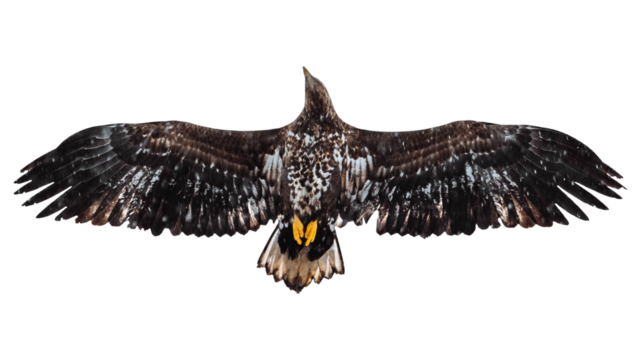 Isolated Eagle soaring in flight with outstretched wings in majestic avian posture