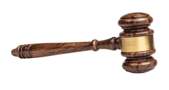 Isolated image of a gavel sitting atop a large, ornate book for the justice system