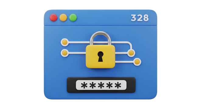 Secure digital access computer login screen with padlock symbolizing data protection and cybersecurity isolated on transparent background