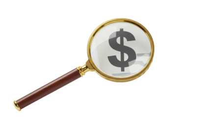 Isolated Magnifying Glass Focusing on Dollar Sign