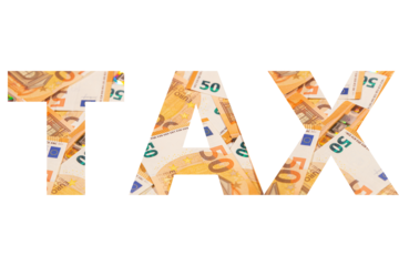 TAX, the word is written in creative text on a background of paper money. Transparent background. PNG