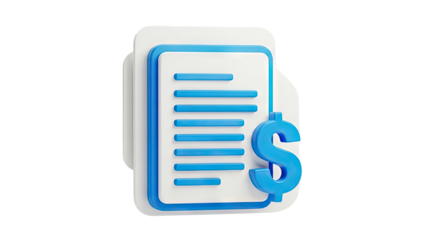 3D Invoice Icon with Green and Yellow Colors on transparent background