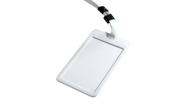 Blank id card holder with black lanyard, ready for personalized identification access security, transparent background rendering