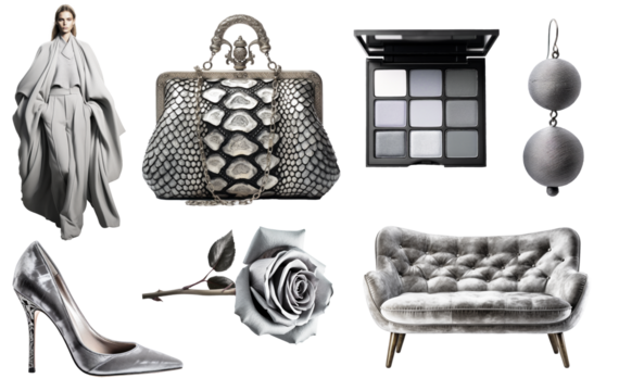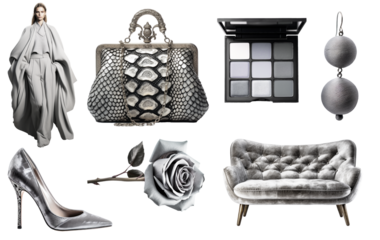 Set of grey fashion accsessories and models on png background. Ideal set for design and collage art.