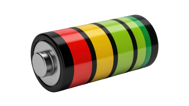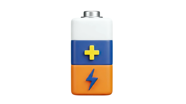 3D Battery Icon with Plus and Lightning Bolt Symbols