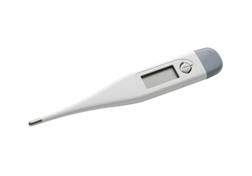 White Digital Medical Thermometer Product Shot Showing 98.6 Degrees Fahrenheit isolated PNG with Transparent Background
