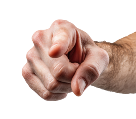 close-up A hand's women pointing With an angry look on her face isolated on transparent background