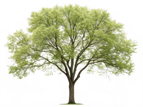 Boxelder tree with wide-reaching branches and vibrant green leaves under a clear sky isolated on transparent background