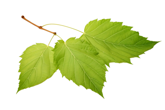Green maple leaves PNG isolated on transparent background, fresh foliage cutout for nature design and autumn season