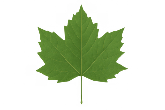 Realistic 3d rendering of a vibrant green sycamore maple leaf isolated on a transparent background, perfect for nature-themed projects
