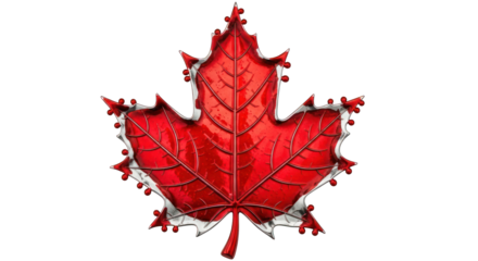 Red maple leaf showcasing autumn colors and canadian national symbolism, isolated with a transparent background