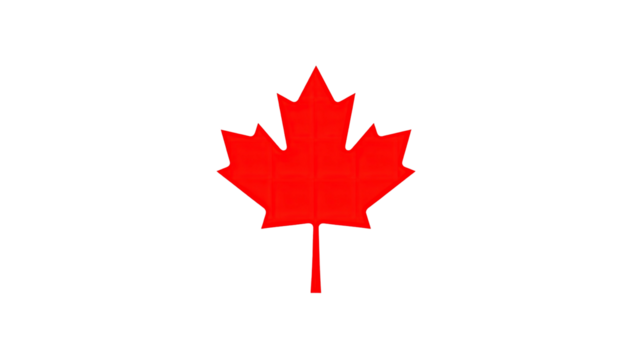 A vibrant red maple leaf emblem centered on a stark black backdrop