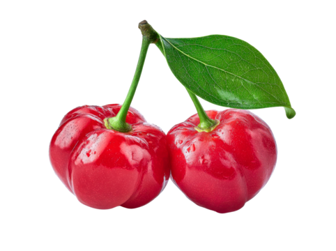 acerola cherries with leaf on transparent background