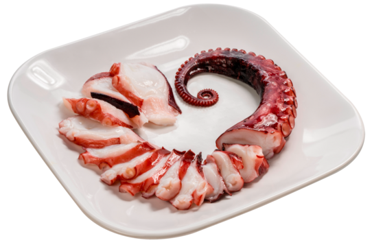 Octopus's arms with Octopus suckers in white plate isolated on white background, Octopus's arms on white, , High resolution photography PNG file.