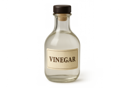 Acetic Acid Solution in a Glass Bowl on a White Plate with Isolated Transparent Background. Generative AI