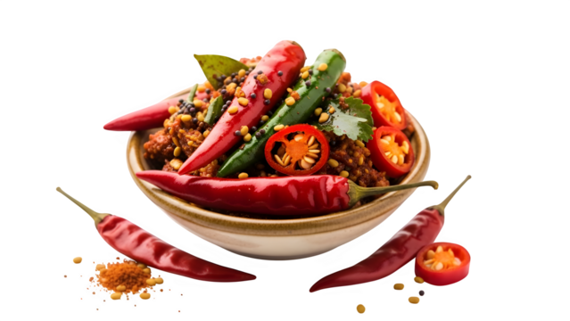 Red chili pickle spicy, isolated on white or transparent background. PNG