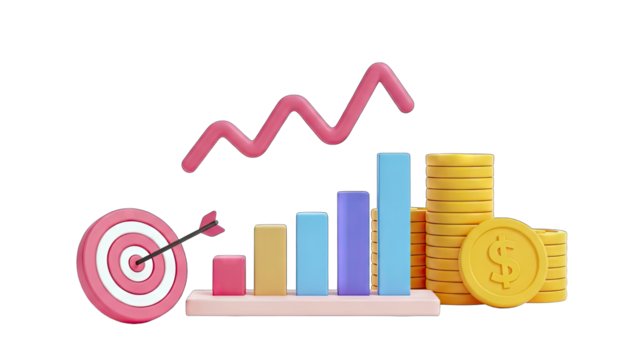 Digital target and goal text with arrow on transparent background