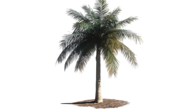 Washingtonia filifera tree, corner view, cutout, transparent background, isolate, Majestic palm tree reaching for the sky, vibrant green fronds against a blue sky backdrop.