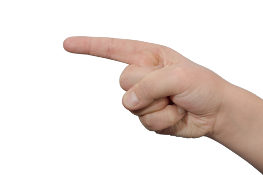 Teen boy index finger gesture to the left. PNG. Isolated. Close-up