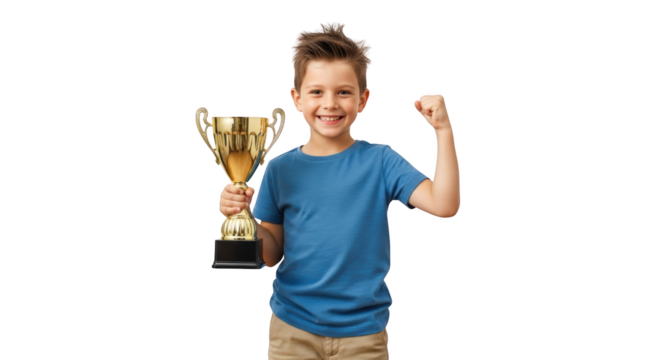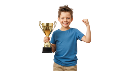 Happy Child Holding a Gold Trophy detailed illustration concept inspired by Happy Child Holding