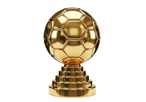 Golden soccer ball trophy award winner champion achievement success prize luxury gold isolated on transparent background