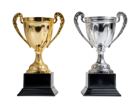 Uma taça de ouro e uma taça de prata isolada em fundo transparente.