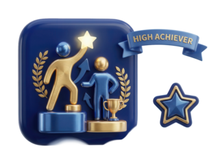 A 3D icon of a high achiever icon with a successful person icon, representing a successful person and a winner, with a star for a championship.