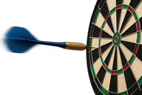 Blue dart hitting dartboard, achieving target and success with motion blur, transparent background