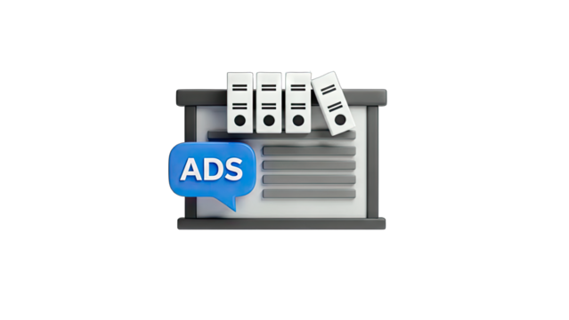 Ads Concept: Files, Speech Bubble, and Information