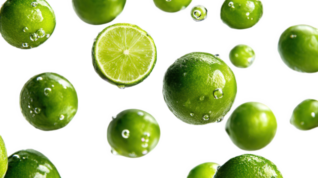 Floating Limes with Bubbles on Transparent Background