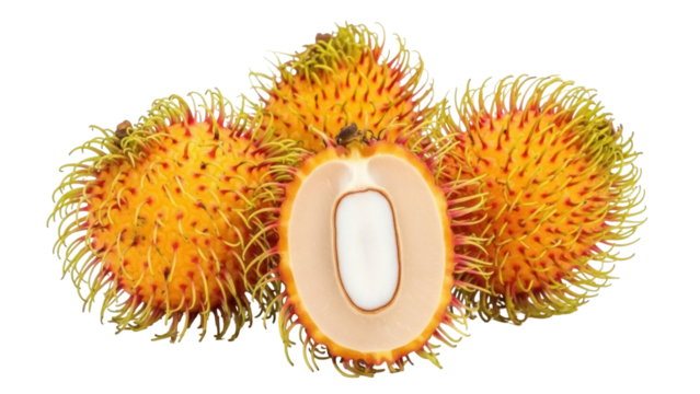 Isolated pile of rambutans, a tropical fruit with a sweet and slightly acidic flavor