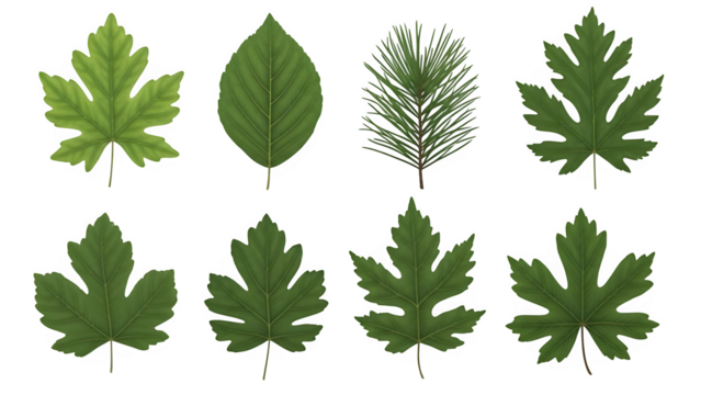 Seven green leaves isolated on transparent background