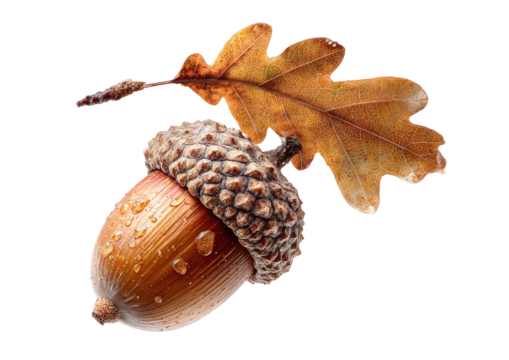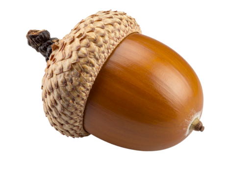Single acorn studio shot on a transparent background exhibiting intricate details