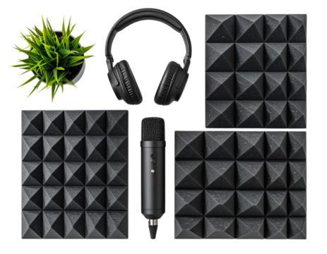 Hyper-realistic PNG of a group arrangement of modern acoustic soundproofing panels in 340484