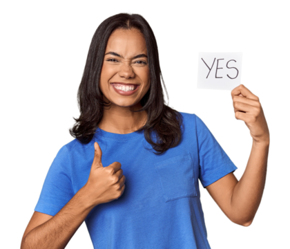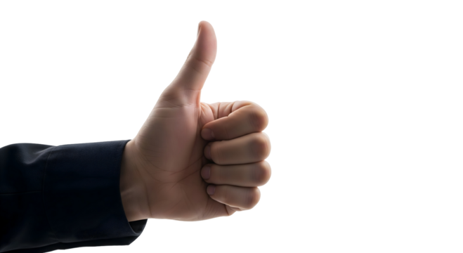 A person is giving thumbs up which shows approval, isolated on transparent background