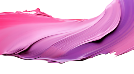 Thick pink and purple acrylic oil paint brush stroke on white and transparent background