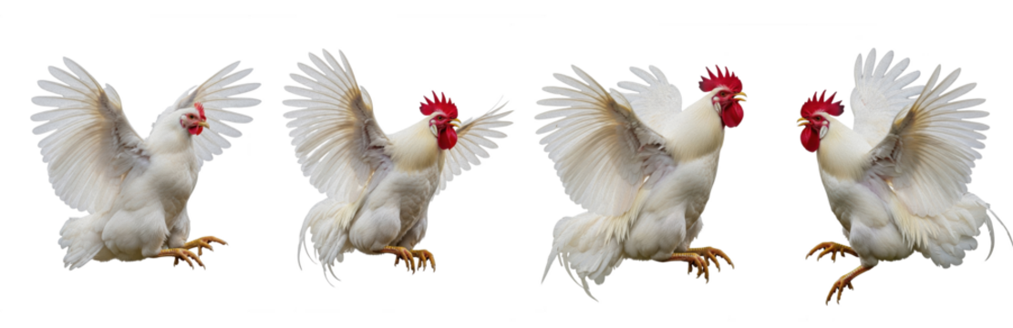 Common Pheasant Phasianus colchicus isolated on white, four birds flying landing wings spread collection game bird wildlife nature set collage photography