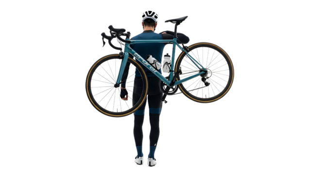 Cyclist Fixing Bike from Back View in Studio, Action Photography, Transparent Background, Sports Environment