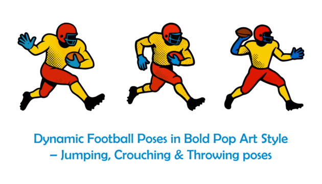 Dynamic Football Poses in Bold Pop Art Style – Jumping, Crouching & Throwing poses