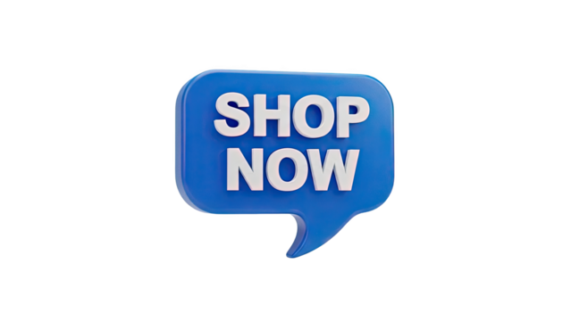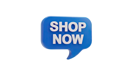 3D Shop Now Call to Action Speech Bubble on transparent background