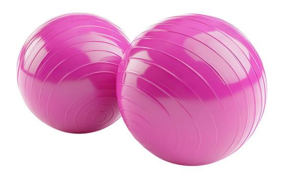 Set of two pink fitness balls for gym and yoga, isolated on transparent cutout background
