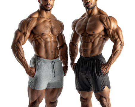 Athletic Male Models in Fitness Shorts on Transparent Background