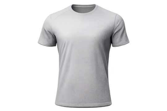 Grey T-shirt Mockup on transparent background, short sleeves clothing.
