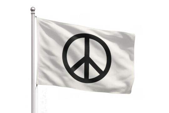 Peace flag waving in wind, representing nonviolence, harmony, and anti-war activism on transparent background