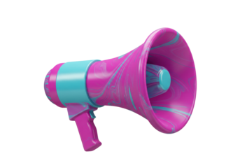 Pink and blue megaphone PNG isolated on transparent background, communication device for announcements and marketing campaigns