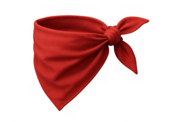 Red bandana tied in a knot, textile product as a stylish accessory or protest symbol, isolated with transparent background